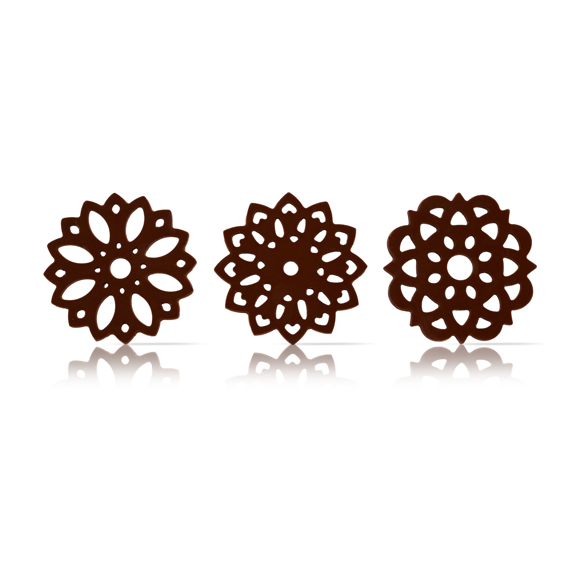 Unsere Schokoladenaufleger verleihen jeder Kreation das gewisse Extra. Ob Torten, Glasdesserts oder auf einem Tartelette – mit den fein gearbeiteten Dobla Auflegern und Steckdekoren können elegante Akzente gesetzt und jedes Stück zu einem echten Hingucker aufgewertet werden.